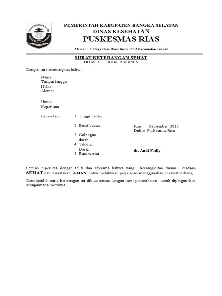 Sebelum moms pergi ke puskesmas, pastikan telah melengkapi dan mengikut cara serta persyaratan pembuatan surat keterangan sehat di puskesmas ini. Contoh surat keterangan sehat puskesmas. Adapun prosedur yang harus anda lakukan ketika membuat surat keterangan sehat di rumah sakit, tidak jauh.